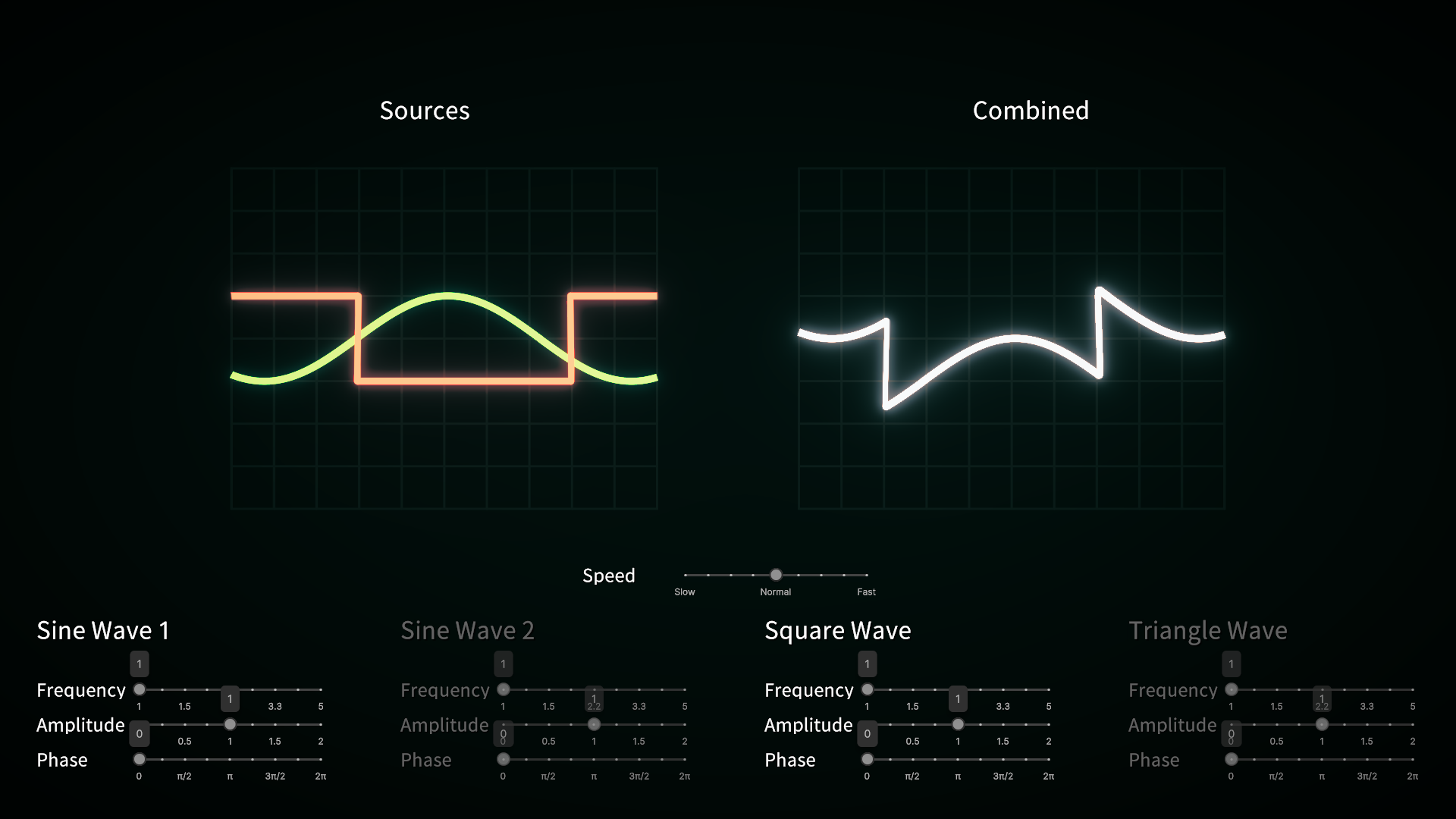 In each level, you’re given a target waveform made from multiple sine, square, or triangle signals. Your goal? Use the sliders to tune your own signals — adjusting frequency, amplitude, and phase — until your combined wave matches the target perfectly.